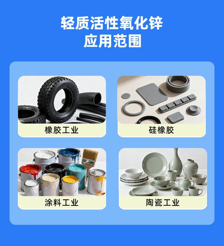 本品采用成熟的 濕法 生產工藝(通常以優質鋅鹽為原料,經精密合成、過濾、低溫干燥等特殊工序制得),是一種具有 較高比表面積 、 較低堆積密度 和 良好反應活性 的白色或微黃色微細粉末。其顆粒形態疏松,具有輕質、易分散的特點。本品主要應用于橡膠、硅橡膠、涂料、陶瓷等對分散性和比重有特定要求的工業領域。