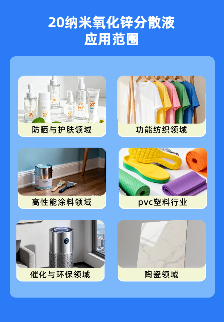 納米效應,性能卓越 :得益于20納米的原生粒徑,產品具有極強的紫外屏蔽(有效對抗UVA和UVB)、抗菌抑菌、光催化(如分解甲醛)及增強增韌等特性,能顯著提升終端產品的綜合性能。