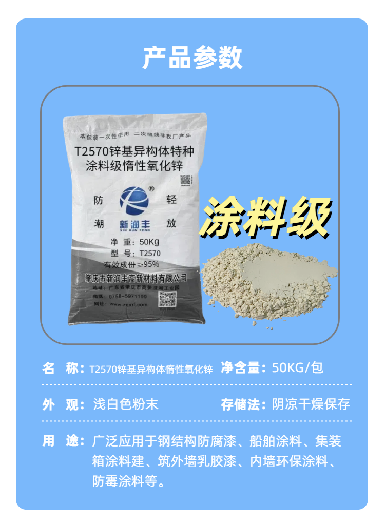 產品名稱: T2570 鋅基異構體特種涂料級惰性氧化鋅
