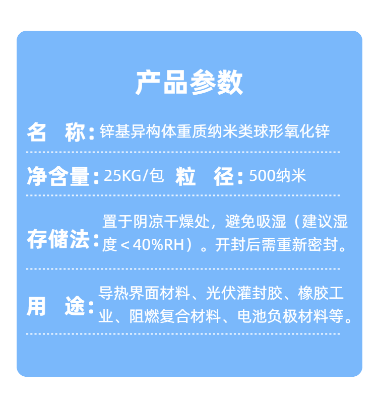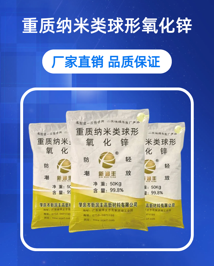 鋅基異構體重質納米類球形氧化鋅(XRF-QNM500)是肇慶市新潤豐高新材料有限公司采用專利異構體界面設計技術開發的高端功能材料。該產品通過鋅硅異構體界面調控((ZnO)?·(Si-O)???),實現了 振實密度1.8 g/cm3 (傳統納米氧化鋅僅為0.3-0.5 g/cm3),同時保持納米尺度效應(D50在100-500納米可調)。球形度達90%的類球形結構賦予其優異的流動性和填充特性,氧化鋅含量≥99.8%,重金屬雜質(Pb、Cd、As)含量<5 ppm,符合歐盟安全標準。本品為國內首創的重質納米氧化鋅,解決了傳統材料高填充下流動性差、分散困難的核心痛點。